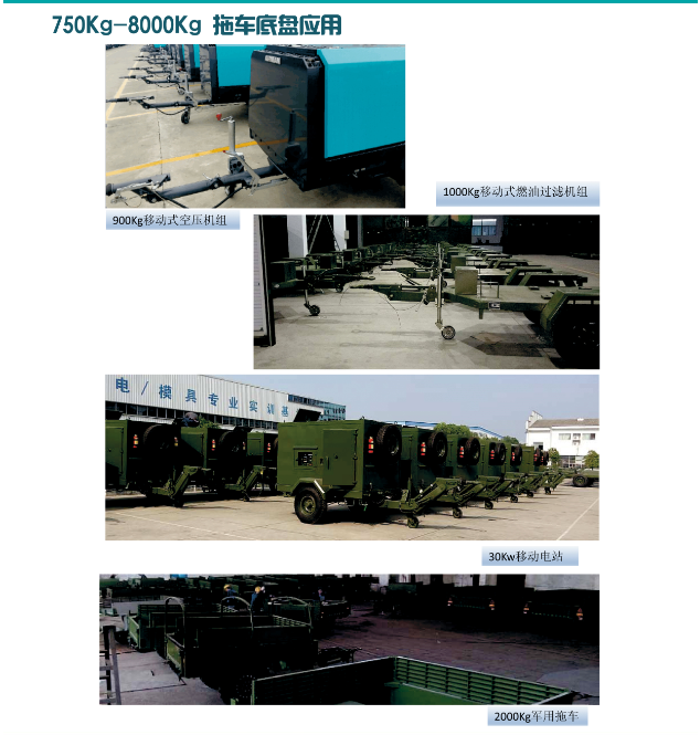 • 主营:小挂车底盘、拖车底盘、全挂车底盘、挂车电站底盘、移动泵站拖车、应急抢险水泵拖车、液压备胎架